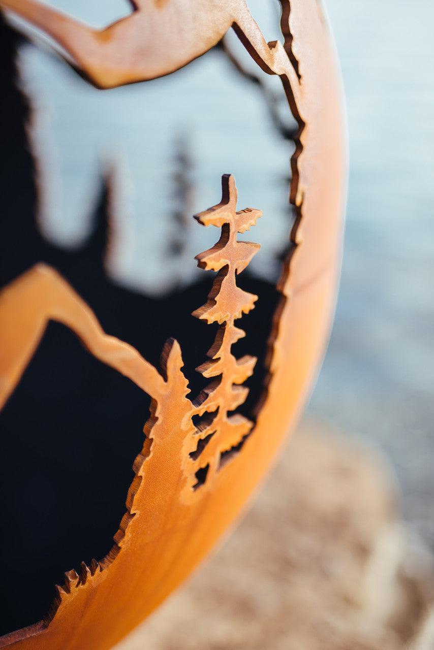 No matter where you are seated, the Mountain Vista Fire Pit transports you back to the peaks. This artisan-crafted fire bowl features intricate, hand-cut silhouettes of mountain ranges that come to life when the fire is lit, casting dancing shadows across your patio. It is designed for those who want to reminisce about good times spent in the high country while enjoying the warmth of a world-class fire. Hand-crafted in the USA, this functional piece of art combines a rugged, adventurous aesthetic with the indestructible durability of heavy-gauge steel.