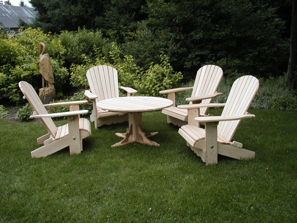 Intelligent Tip-Resistant Table: Our 42" round table is specially engineered to accompany Adirondack heights. It features hidden stops under each leg to prevent the wood from sitting directly on the ground, significantly increasing durability.